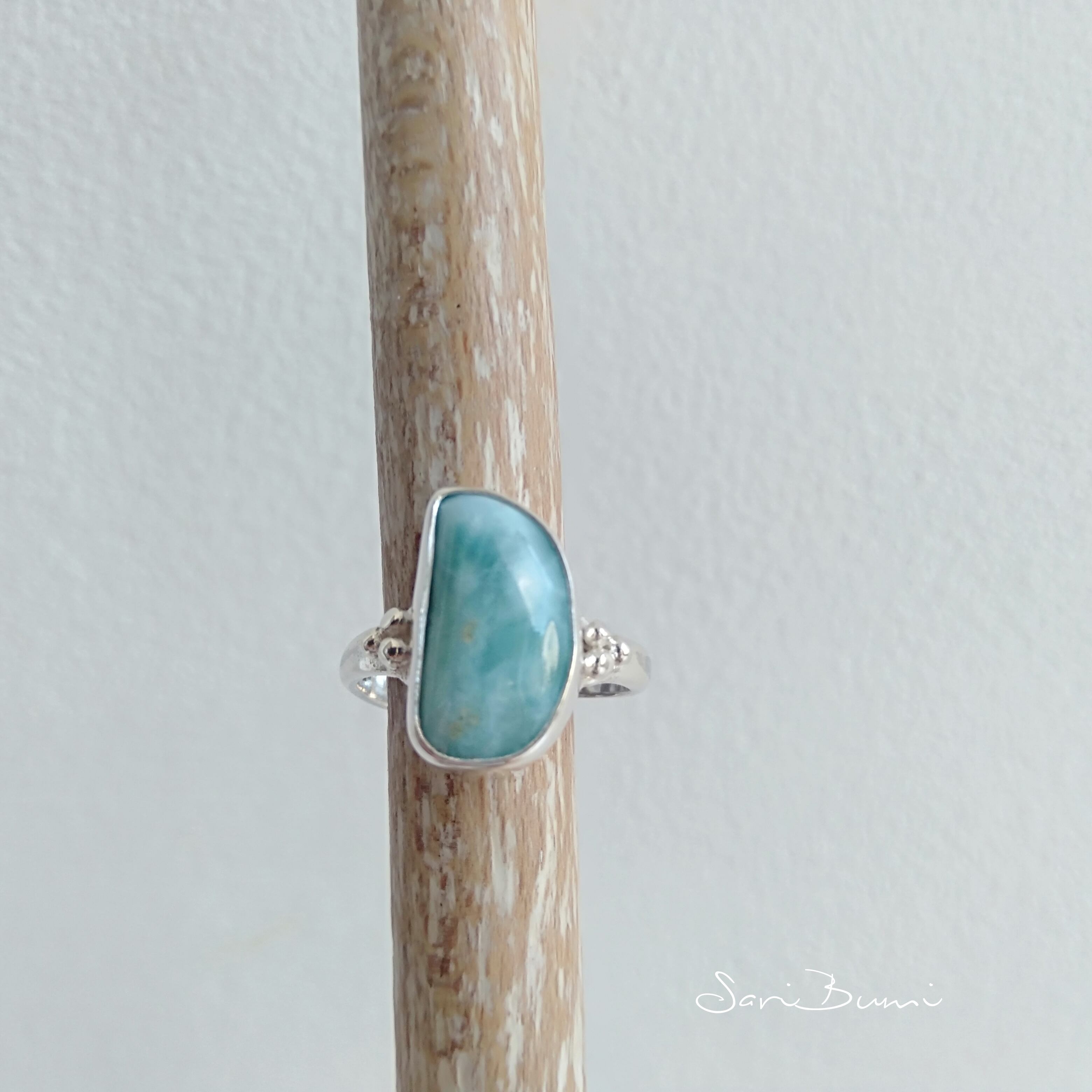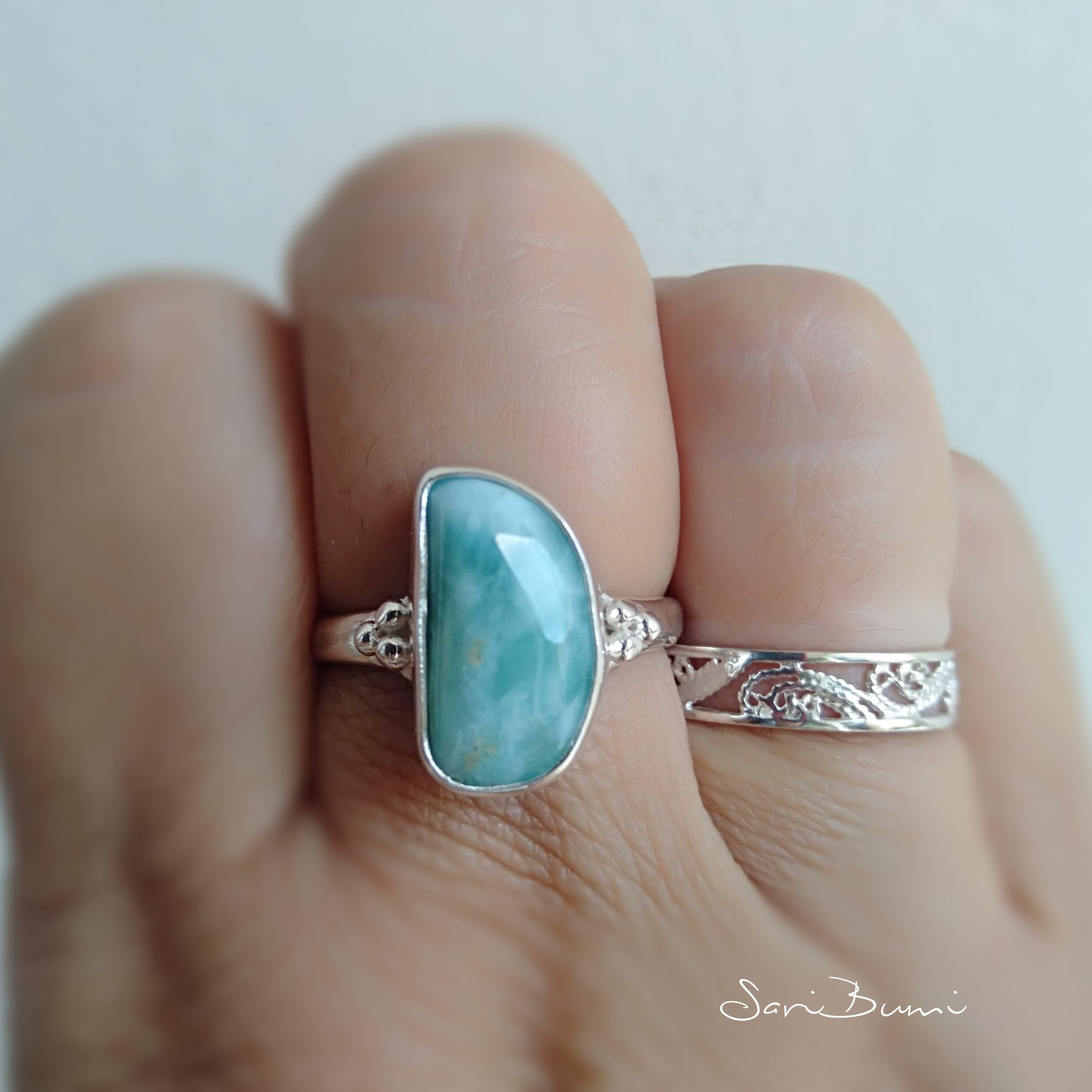 カリブ海の宝石、癒やしの石ラリマーでシルバーリングを作りました。